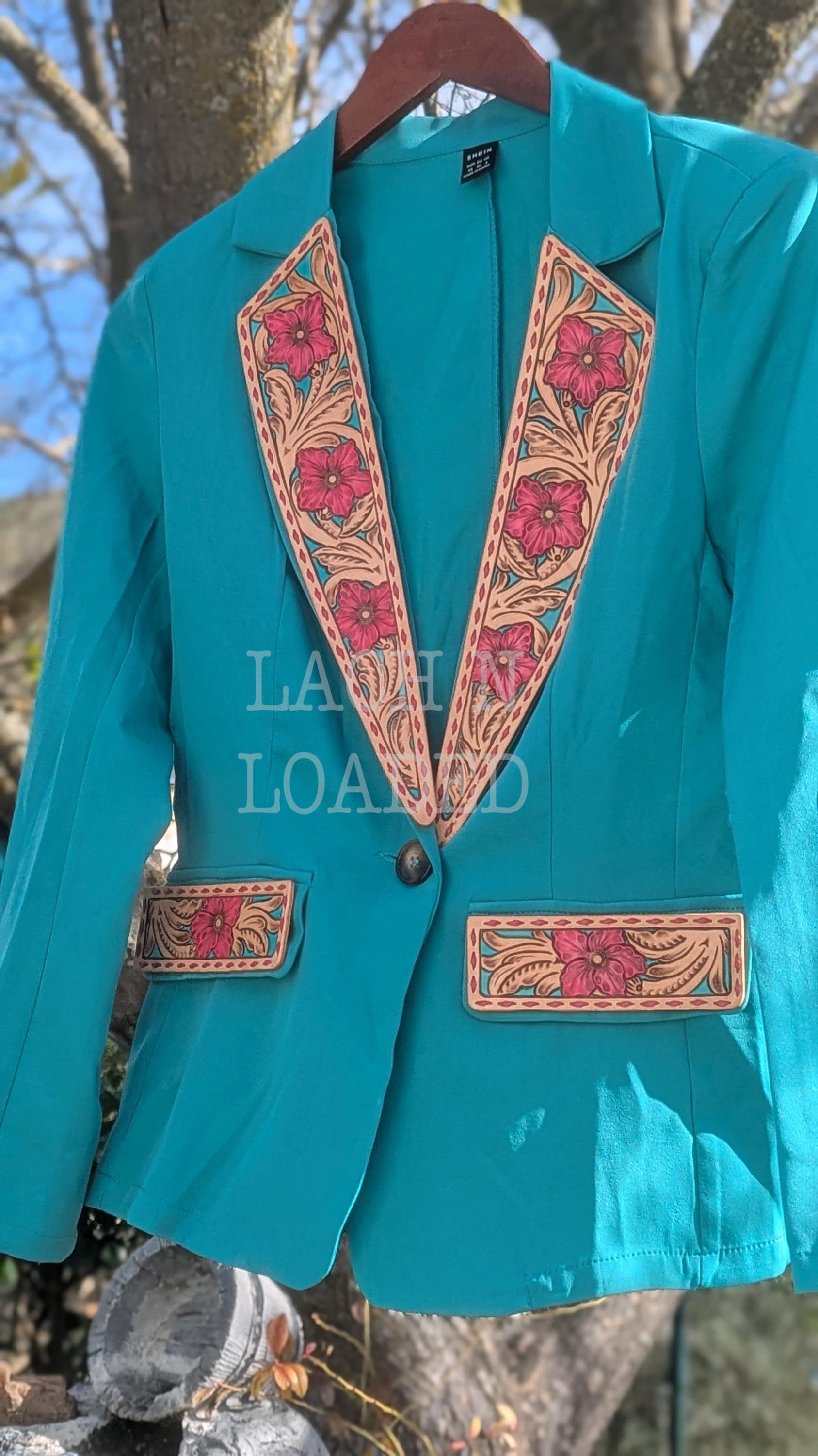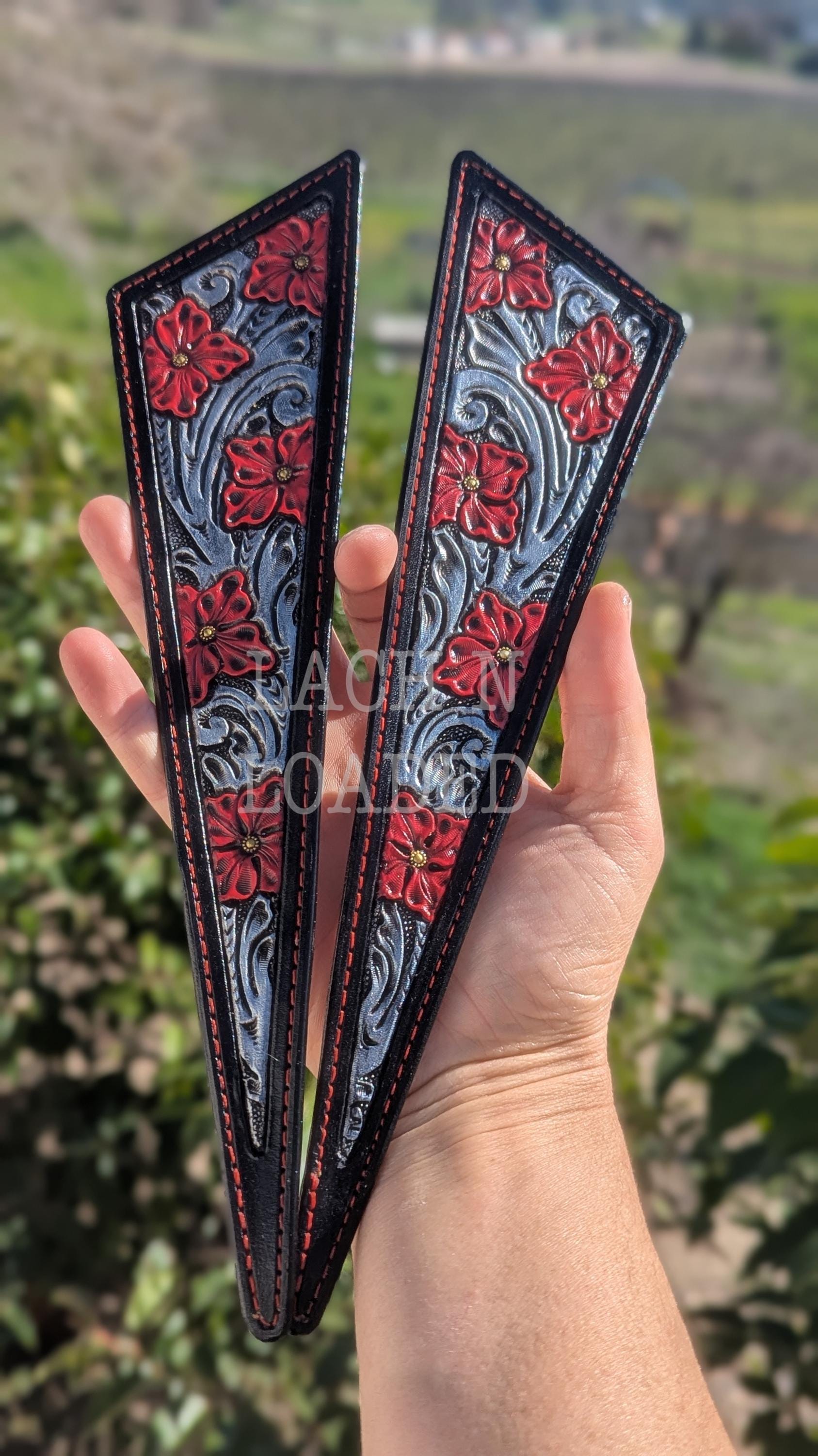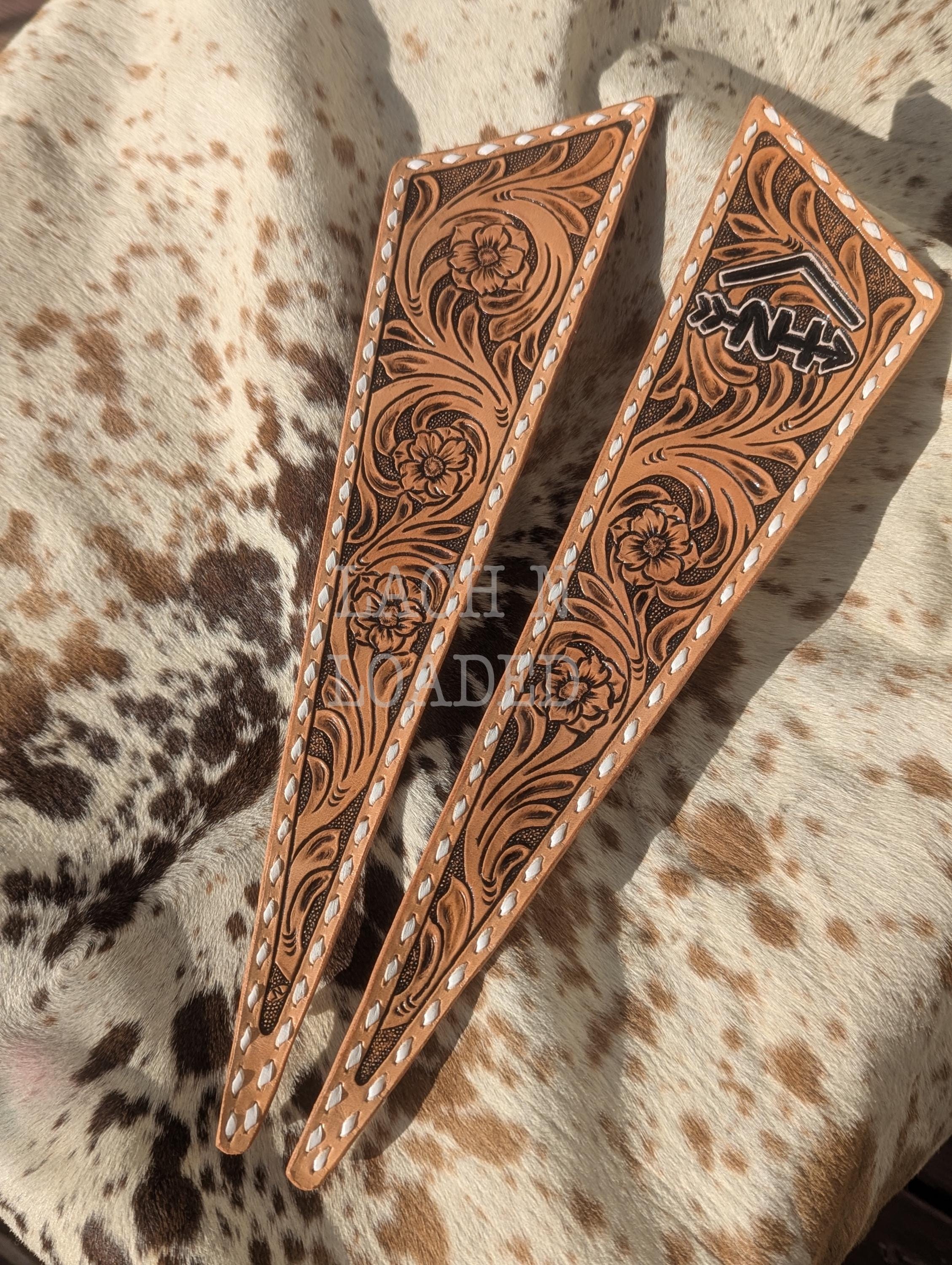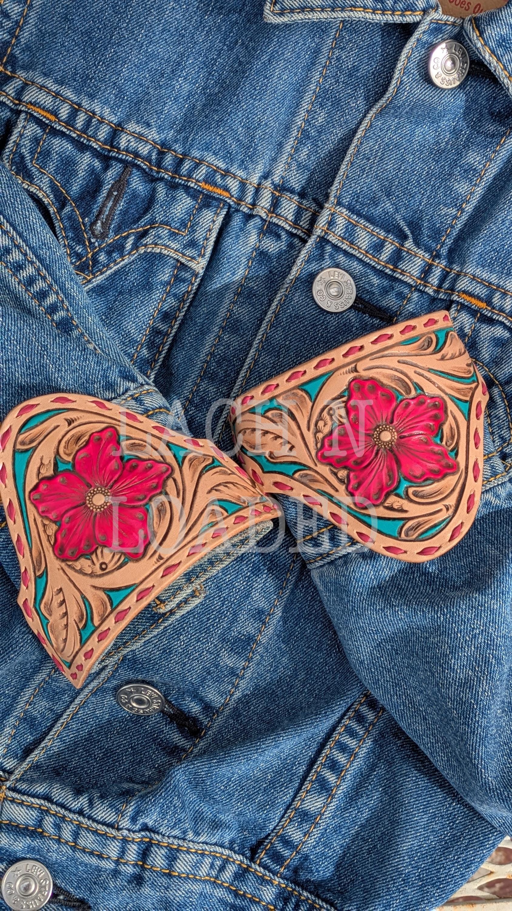 Custom tooled leather jacket lapels and jacket pockets to step up your formal wear! Perfect for weddings, prom, NFR or any other fancy outing you have lined up. Message me to discuss design and measurements so I can make it the perfect fit for your jacket. My lapels are removable for easy cleaning and on rented formalwear and can be swapped out on multiple jackets so long as the lapel shape is the same.
