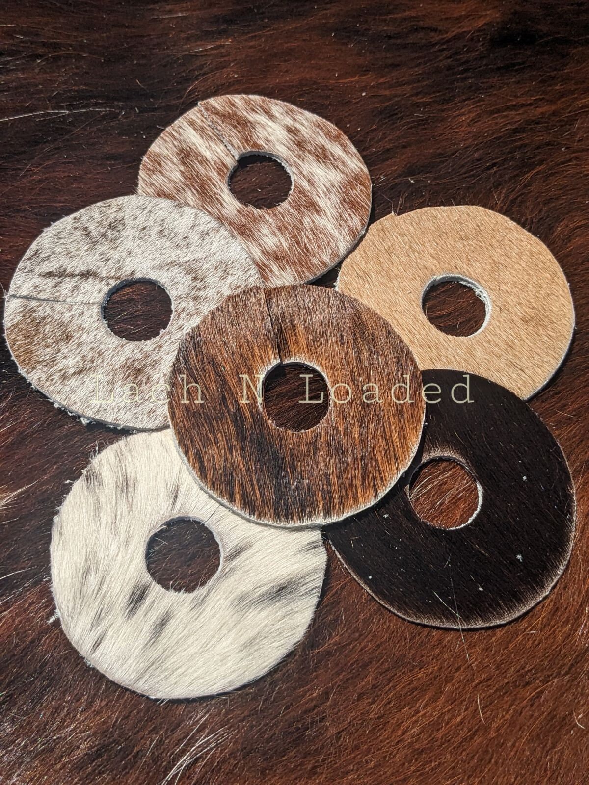 Keep track of your glass with a cowhide tag charm you can remember! Each set comes with 6 different color and hide patterns so your guests can keep track of their drinks. Perfect addition for the western home.