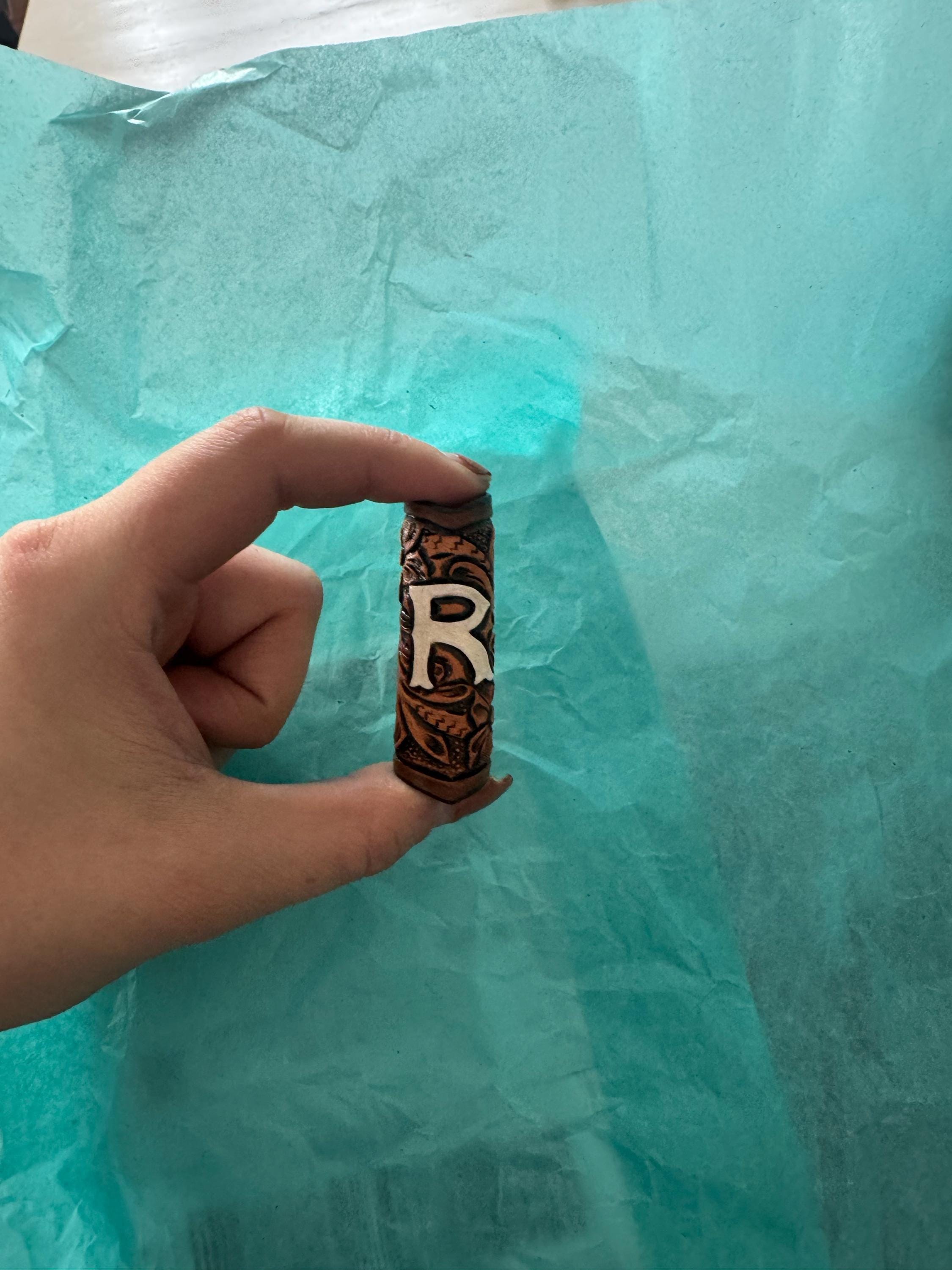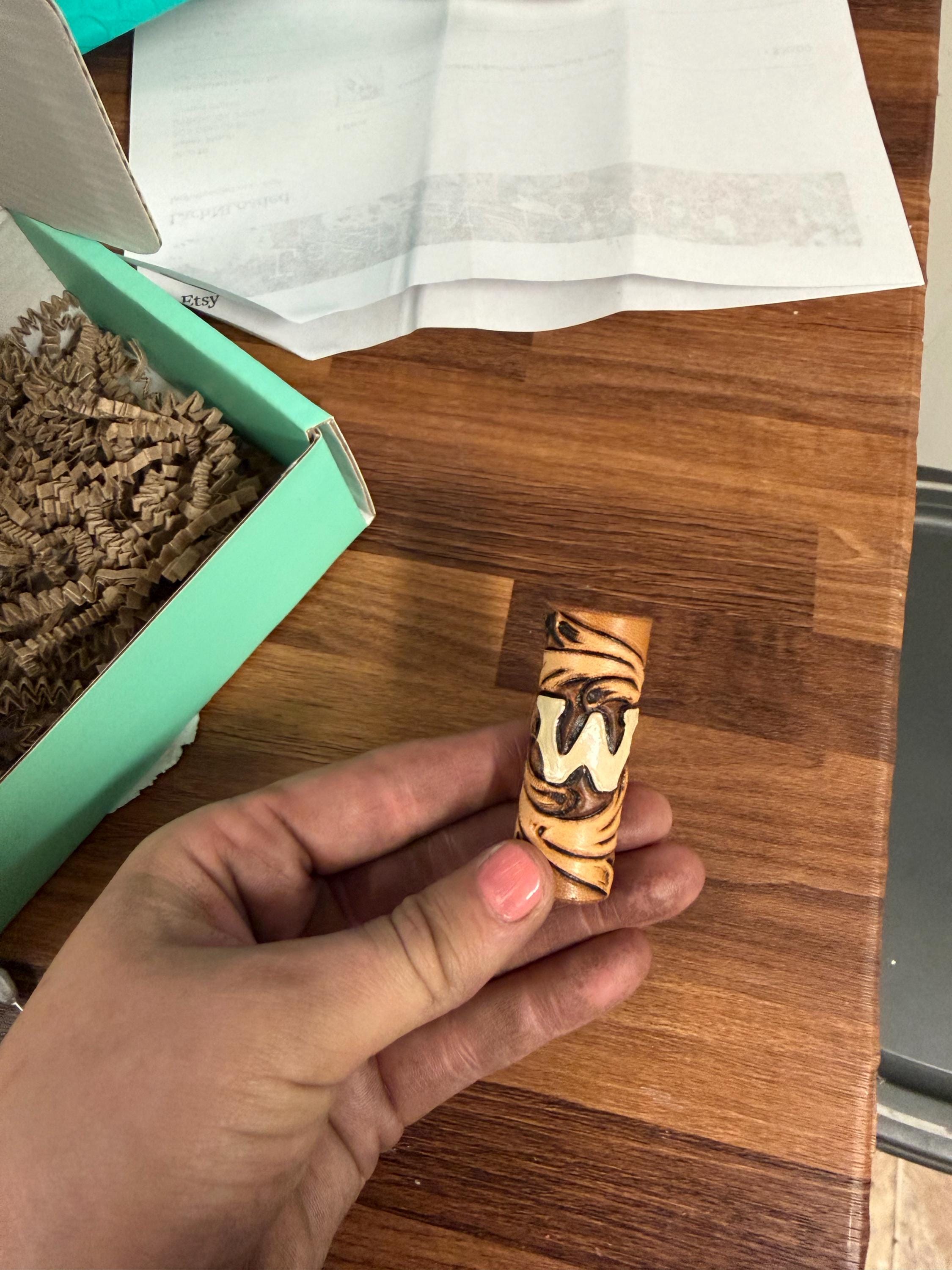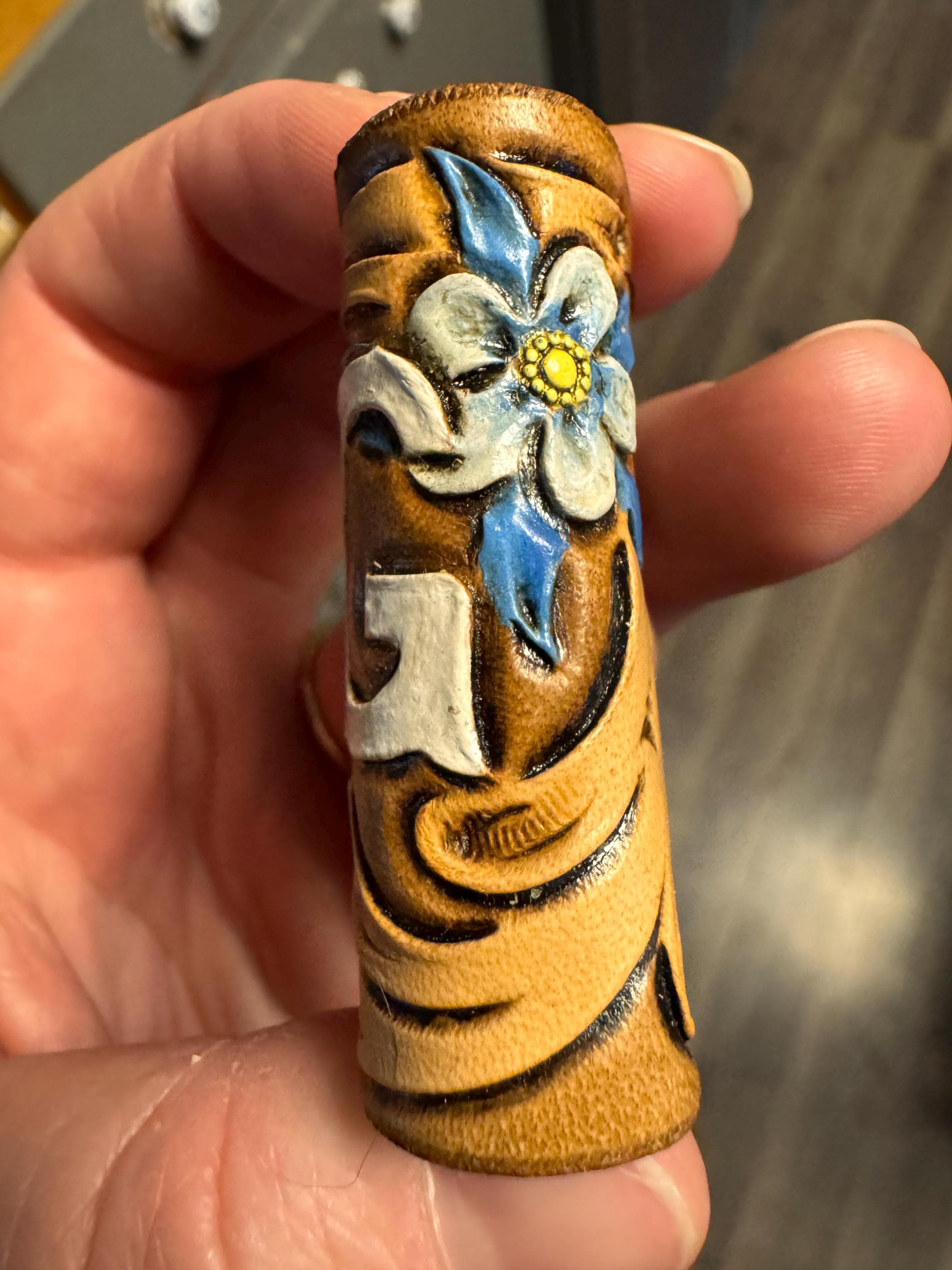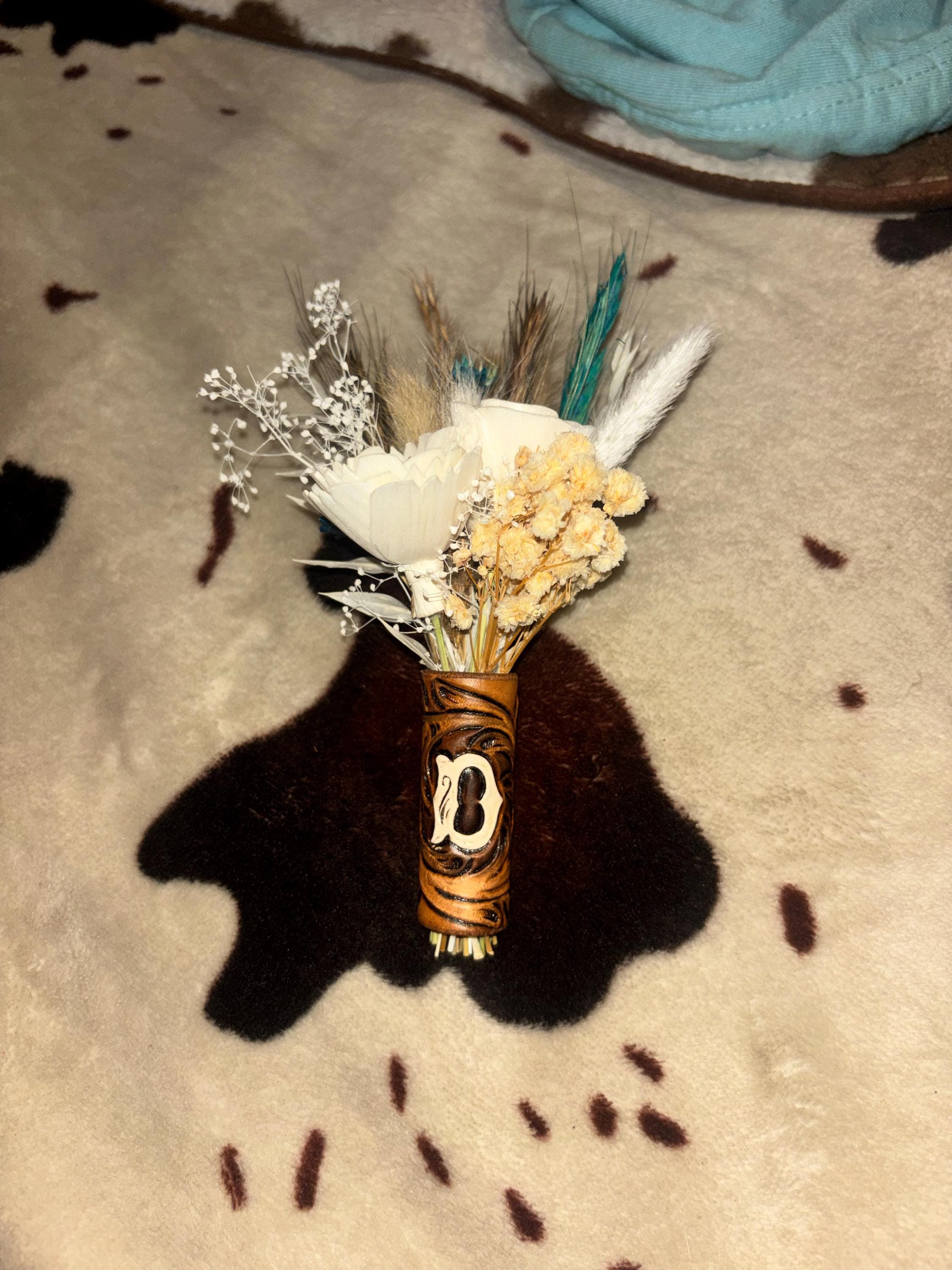 Customize your wedding with a personal touch of a tooled leather Boutonniere wrap. Add your brand or initial(s) to make it special. Match wedding colors and accent with your favorite leather tones. Let me know what you would like for the general tooling, just remember, they are small and I can fit classic scrolls and one to three flowers in the area. If you would like a basket stamp or something else shoot me your ideas!